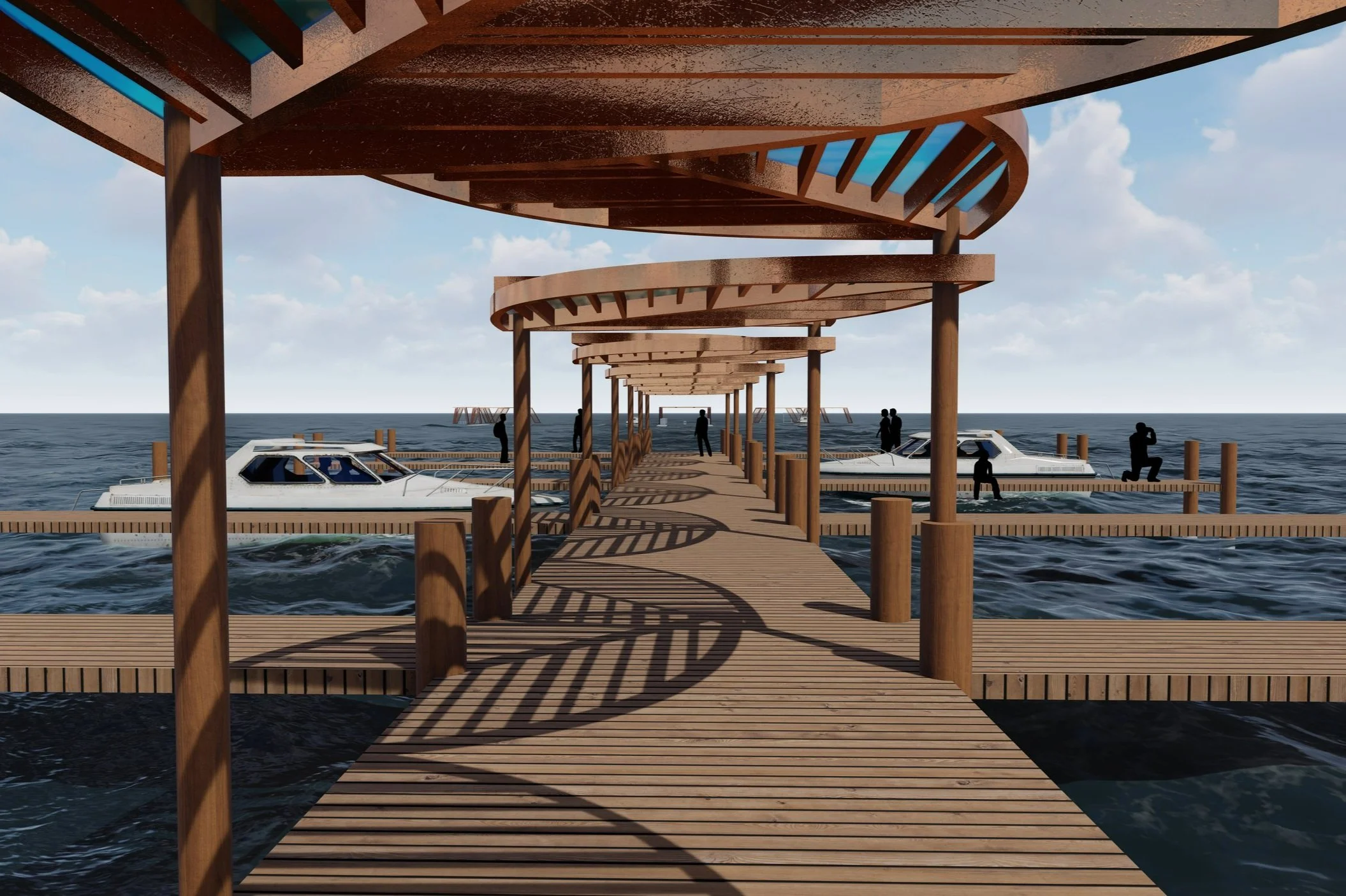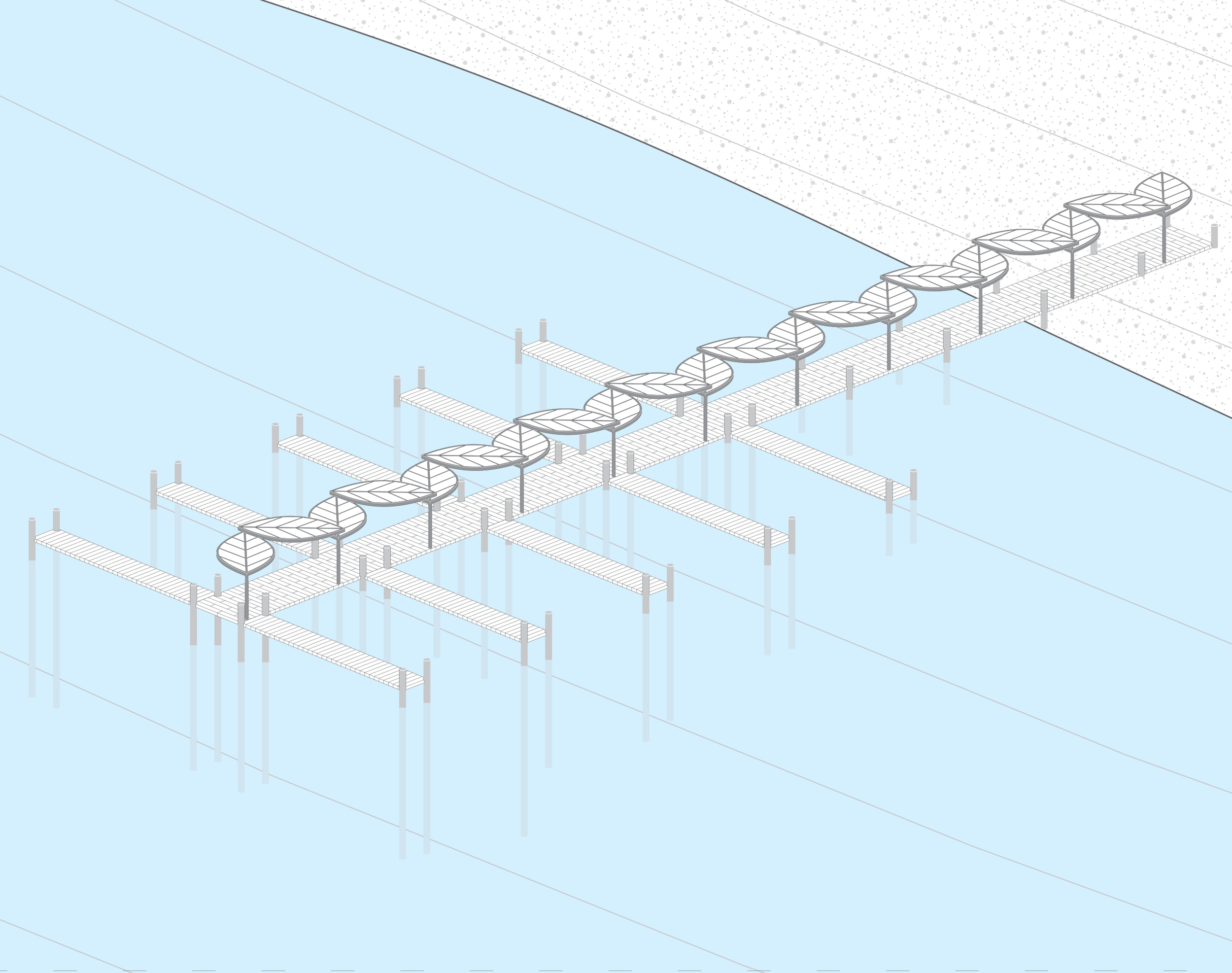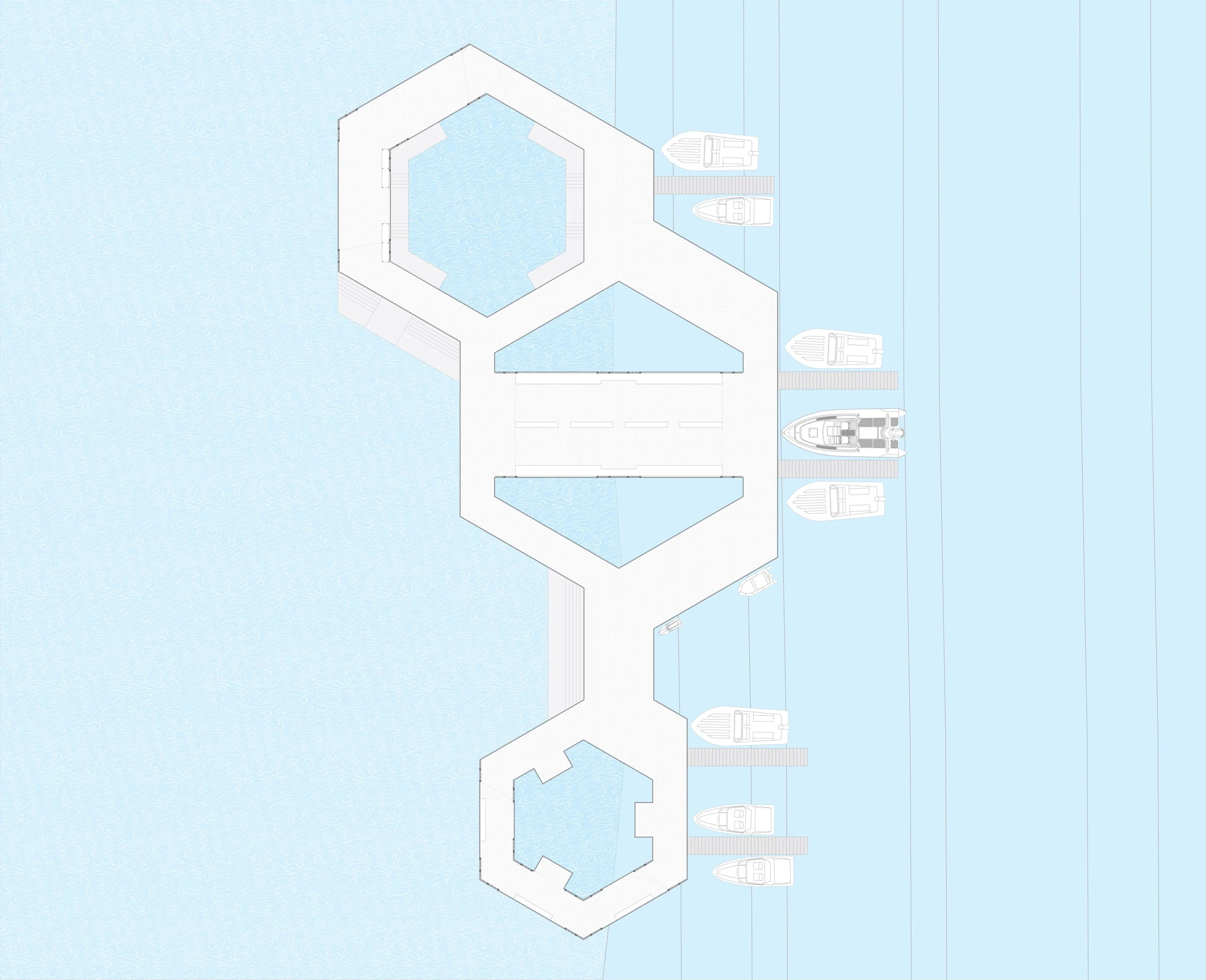 This project has two points of focus; the land structures and the ocean platform.